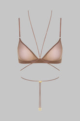Soutien-gorge triangle sans armatures, élaboré dans un jersey fin aux reflets brillants et subtilement transparents. Conçu pour épouser parfaitement la forme des seins grâce à ses bonnets triangles moulés sans couture. Le laçage tour de cou totalement amovible et ajustable grâce à un régleur unique et des accessoires lipstick dorés signés Maison Close, sublime votre décolleté tout en permettant une personnalisation selon vos envies. Les fines bretelles plates et ajustables assurent un ajustement parfait. Une bande élastique en tour de buste épouse et galbe parfaitement la poitrine. Fermeture par agrafage ajustable au dos.