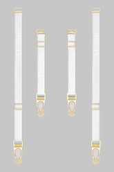 Quatre jarretelles Signature blanches amovibles et réglables aux finitions dorées. A jouer avec les autres Signature disponibles dans plusieurs coloris. L’occasion pour chaque Muse de créer son mix and match survitaminé.