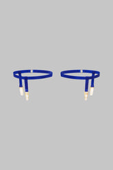 Deux jarretières Signature néon estampées Maison close. Élastiques réglables aux finitions dorées. Mini-jarretelles mobiles à positionner de part et d’autre de la jambe une fois la jarretière ajustée.