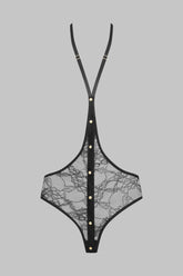 La Culotte Harnais JEUX MAGNÉTIQUES enveloppe le corps d’une dentelle florale délicate, rehaussée d’un harnais sensuel qui s’ajuste autour du cou. Pensée comme une pièce maîtresse du jeu, elle s’ouvre entièrement de l’avant à l’arrière grâce à une série de boutons magnétiques dorés dissimulés dans les lignes du modèle. Le harnais se porte comme un bijou de corps, à enfiler, dessinant une silhouette affirmée et structurée. Une pièce singulière, conçue pour révéler et libérer à l’instant choisi.