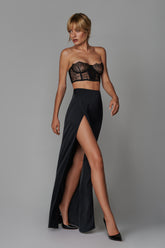 La jupe droite taille haute présente un design style portefeuille qui apporte une élégance et un charme intemporel à cette pièce. Confectionnée en satin double face et opaque alliant la douceur, la fluidité et une qualité incomparable. Elle séduit par son ouverture provocante lors du jeu de jambes. La fermeture par zip invisible sur le côté assure un ajustement et une finition épurée.