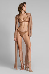Sa teinte chaude et solaire s’accorde parfaitement avec les pièces de la collection French Kiss Light. À superposer sur une lingerie délicate, un maillot de bain ou une tenue habillée pour une allure nonchalante et sophistiquée.