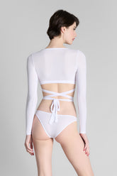 Cache-cœur manches longues au toucher unique. Modal côtelé extensible, ultra doux et léger qui s’étire en brillance comme en transparence. Décolleté cœur croisé réversible à porter devant ou au dos. Jouez avec le laçage pour fermer et moduler le cache-cœur selon vos envies.Caractéristiques