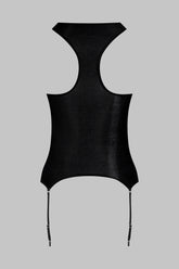 Débardeur porte-jarretelles au toucher unique. Modal côtelé extensible, ultra doux et léger qui s’étire en brillance comme en transparence. Coupe moulante et épurée au décolleté arrondi et dos nageur. Rehaussé de quatre jarretelles élastiques recouvertes de modal aux finitions argentées réglables et non-amovibles.Caractéristiques