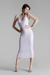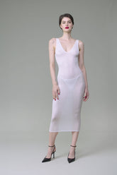 Robe midi dos nu au toucher unique. Modal côtelé extensible, ultra doux et léger qui s’étire en brillance comme en transparence. Coupe moulante et épurée aux décolletés V plongeant à l’avant et au dos, soutenu par de larges bretelles.Caractéristiques