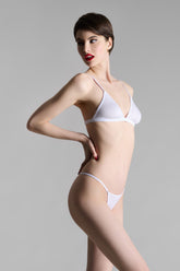 Soutien-gorge triangle sans armatures au toucher unique. Modal côtelé extensible, ultra doux et léger qui s’étire en brillance comme en transparence. Fines bretelles non-amovibles, recouvertes de modal, aux finitions argentées réglables. Fermeture ajustable par agrafages au dos.Caractéristiques