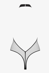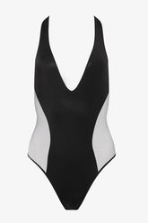Le maillot Une Pièce dos nu Minuit combine microfibre opaque et tulle transparent pour un effet graphique tout en subtilité, rehaussé par un film métallique noir qui apporte une brillance discrète. Le décolleté plongeant et le dos nu dévoilent juste ce qu’il faut, tandis que la coupe string élance la silhouette. Une forme de maillot à enfiler, sans ouverture à l’entrejambe, qui assure une ligne fluide et élégante. Le tulle des côtés jusqu’au dos, bordé de microfibre brillante, ajoute une finition soignée. Doublé à l’entrejambe, ce maillot reste confortable grâce à ses élastiques fins et souples et une fermeture par crochet argenté dans le cou.