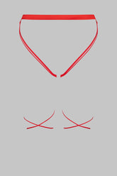 Culotte ouverte alliant douceur satinée et style unique. Un jeu de laçage sur les côtés est ajustable grâce à un régleur unique et des accessoires lipstick dorés signés Maison Close à ajuster selon vos envies, autour des jambes ou autour de la taille. Les élastiques effet jockstrap sont réglables par des accessoires dorés.