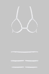 Une parure blanche ouverte, taille unique, à superposer ou à porter à même la peau, comme un trompe-l’œil de lingerie.