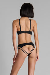 La culotte taille haute ouverte Pure Tentation revisite une forme iconique à travers le prisme de la suggestion. La taille haute structure le bassin, tandis que le dos ouvert rompt les codes avec élégance. La microfibre opaque se juxtapose à un tulle transparent, jouant des contrastes et des superpositions pour composer un graphisme sensuel. Sans doublure coton à l’entrejambe.