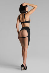 La jupe Pure Tentation brouille les frontières entre dessous et dessus. En tulle transparent et microfibre opaque, elle se pose sur la peau comme un voile graphique, redessinant les courbes avec subtilité. À mi-chemin entre vêtement et mise en scène, cette jupe trouble les codes. Transparente sur les fesses, elle joue avec ce qu’elle laisse voir et deviner. Sa ceinture élastique à la taille assure un porté ajusté, tandis qu’un élastique au dos, réglable et amovible, apporte une touche inattendue, à interpréter selon l’instant ou l’intention.