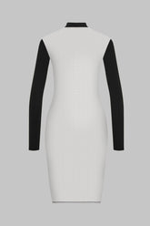 Le col montant s’enfile facilement et encadre le port de tête, tandis que le dos entièrement transparent se révèle dans un contraste délicat avec la face avant plus couvrante. Les manches longues accentuent la verticalité de la pièce, allongeant la ligne avec discrétion.