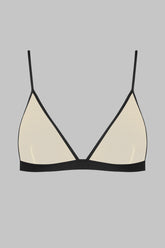 Le soutien-gorge triangle Pure Tentation dévoile le corps avec une délicatesse assumée. Sa construction bi-matière mêle un tulle transparent sur la poitrine et des découpes en microfibre opaque. Sans armatures, il offre une sensation seconde peau, soutenue par des pinces poitrine pour une ligne naturellement ajustée. Les fines bretelles sont réglables, et la fermeture se fait au dos par un agrafage discret.