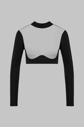 Le top transparent manches longues Pure Tentation joue la carte du contraste absolu. Sa coupe graphique mêle un tulle délicatement transparent à des empiècements de microfibre opaque, créant un effet visuel audacieux, tout en subtilité.