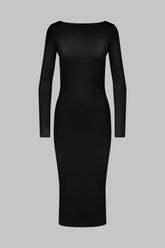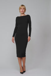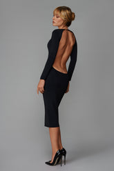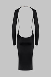 La robe dos nu se distingue par sa coupe midi très ajustée qui épouse et dessine une silhouette épurée et affirmée. Confectionnée en jersey stretch opaque elle dispose de manches longues et d’une ouverture vertigineuse au dos qui ne laisse personne indiffèrent. La Fermeture se fait dans la nuque par une double jarretelles, amovible et réglable signée Maison Close réhaussée par des attaches bijoux dorées uniques. Le col bateau sans couture souligne le port de tête.