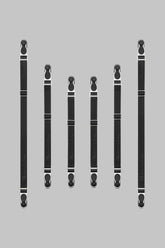Six double-jarretelles Signature noires amovibles et réglables aux finitions argentées. Les attaches double sens permettent d’accessoiriser vos bas avec toute votre lingerie et votre prêt-à-porter Maison Close sans avoir besoin de porte-jarretelles. À jouer selon vos envies, l’occasion pour chaque Muse de créer son mix and match.