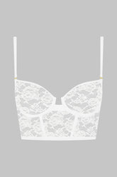 Le soutien-gorge bustier se pare d’une dentelle ajourée majoritairement recyclée.