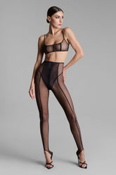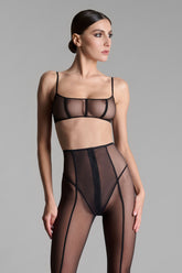 Le soutien-gorge brassière L’AMOUREUSE, en tulle d’une transparence absolue, se porte sans armatures. Des baleines souples sur le devant viennent structurer façon corset le décolleté. Les bretelles fines, réglables, et la fermeture au dos par un agrafage fin apportent un maintien léger et confortable.