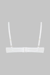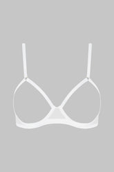 Le soutien-gorge ouvert avec armatures en tulle blanc est la pièce irrévérencieuse de la collection.