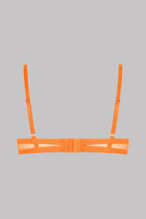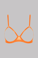 Le soutien-gorge ouvert avec armatures en tulle néon est la pièce irrévérencieuse de la collection.