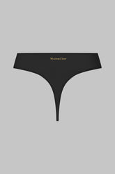 String taille haute élaboré dans un jersey fin aux reflets brillants et subtilement transparents. Il est bordé d’un élastique ultra plat invisible sous les vêtements. La signature dorée du logo Maison Close s’inscrit au dos. Coupe très échancrée sur les hanches qui allonge la silhouette.